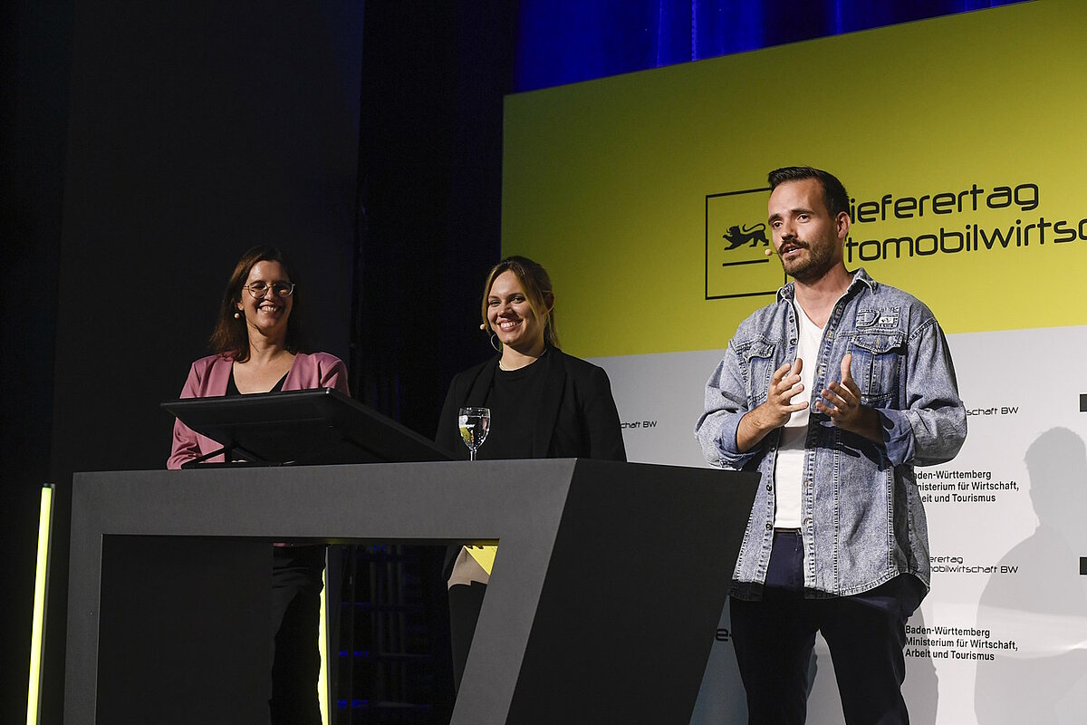 Alina Fleck und Anja Krätschmer von der e-mobil BW moderieren den Zulieferertag Automobilwirtschaft BW 2025 (v.l.n.r.)