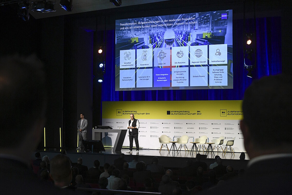 Praxisbeispiele lieferten EDAG Production Solutions und Carl Zeiss IQS, die zeigten, wie sie bereits heute künstliche Intelligenz gemeinsam für präzise Analysen und Qualitätsmanagement einsetzen. Auch der Vortrag von Dr.-Ing. Pierre Freundt und Tom Faber von der ElringKlinger AG unterstrich, wie sich Komponenten-Expertise und Software-Intelligenz verbinden lassen – etwa beim Herzstück der Elektromobilität, der Batterie.