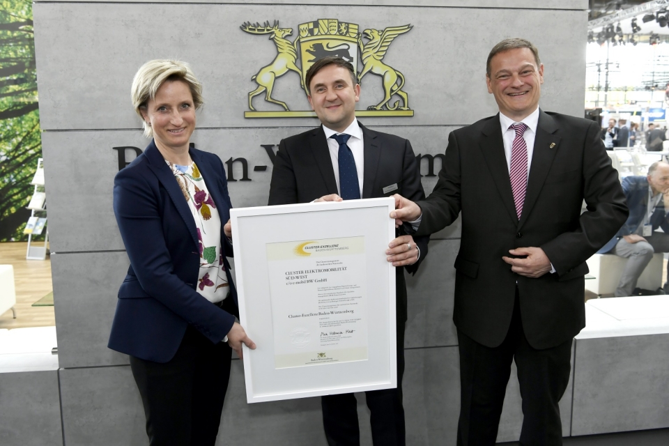 „Für das hervorragende und professionelle Management des Spitzenclusters Elektromobilität Süd-West darf ich das Clustermanagement, das von der Landesagentur für Elektromobilität und Brennstoffzellentechnologie e-mobil BW geleistet wird, heute mit dem Label „Cluster-Exzellenz Baden-Württemberg“ auszeichnen. Zu diesem neuerlichen Erfolg gratuliere ich Ihnen herzlich,“ sagte Wirtschaftsministerin Dr. Nicole Hoffmeister-Kraut am Dienstag bei der Übergabe der Urkunde am Baden-Württemberg Pavillon in Halle 27.