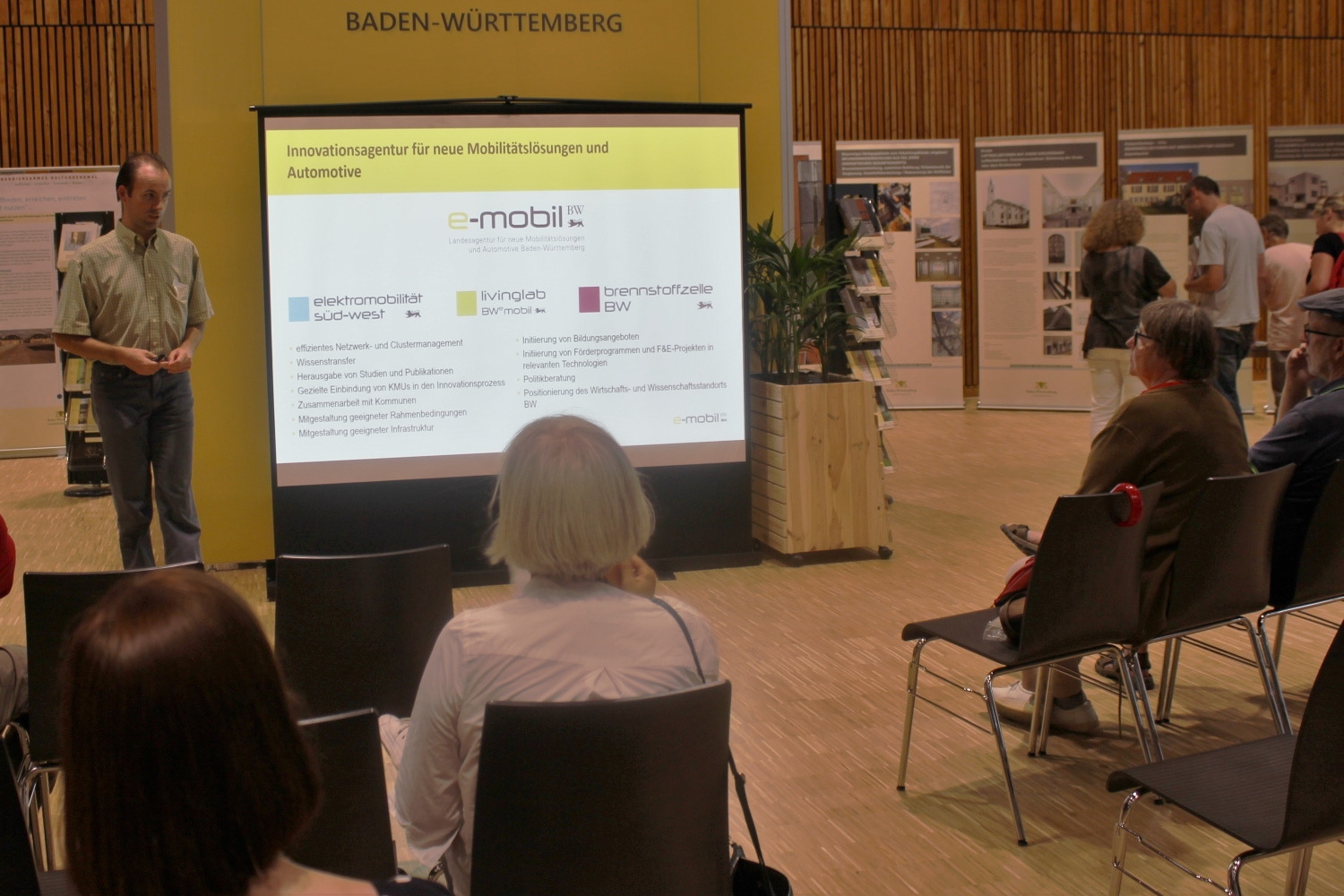 „Wie lassen sich Stromladesäulen auf dem eigenen Grundstück oder am eigenen Arbeitsplatz finanzieren?“ oder „Wie unterscheiden sich die Akkus“? Die Exponate, darunter ein Pedelec und Elektrofahrzeug, weckten bei einigen Besuchern das Interesse sich über die Alltagstauglichkeit mit den Ansprechpartnern auszutauschen. Neben praktischen Fragen zur Ladeinfrastruktur und Reichweite wurden auch aktuelle Aktivitäten der Landesregierung wie der Strategiedialog Automobilwirtschaft BW angesprochen. Insbesondere die Auswirkungen des Technologiewandels für die Wirtschaft waren Gesprächsthemen, die die Besucher interessierten.