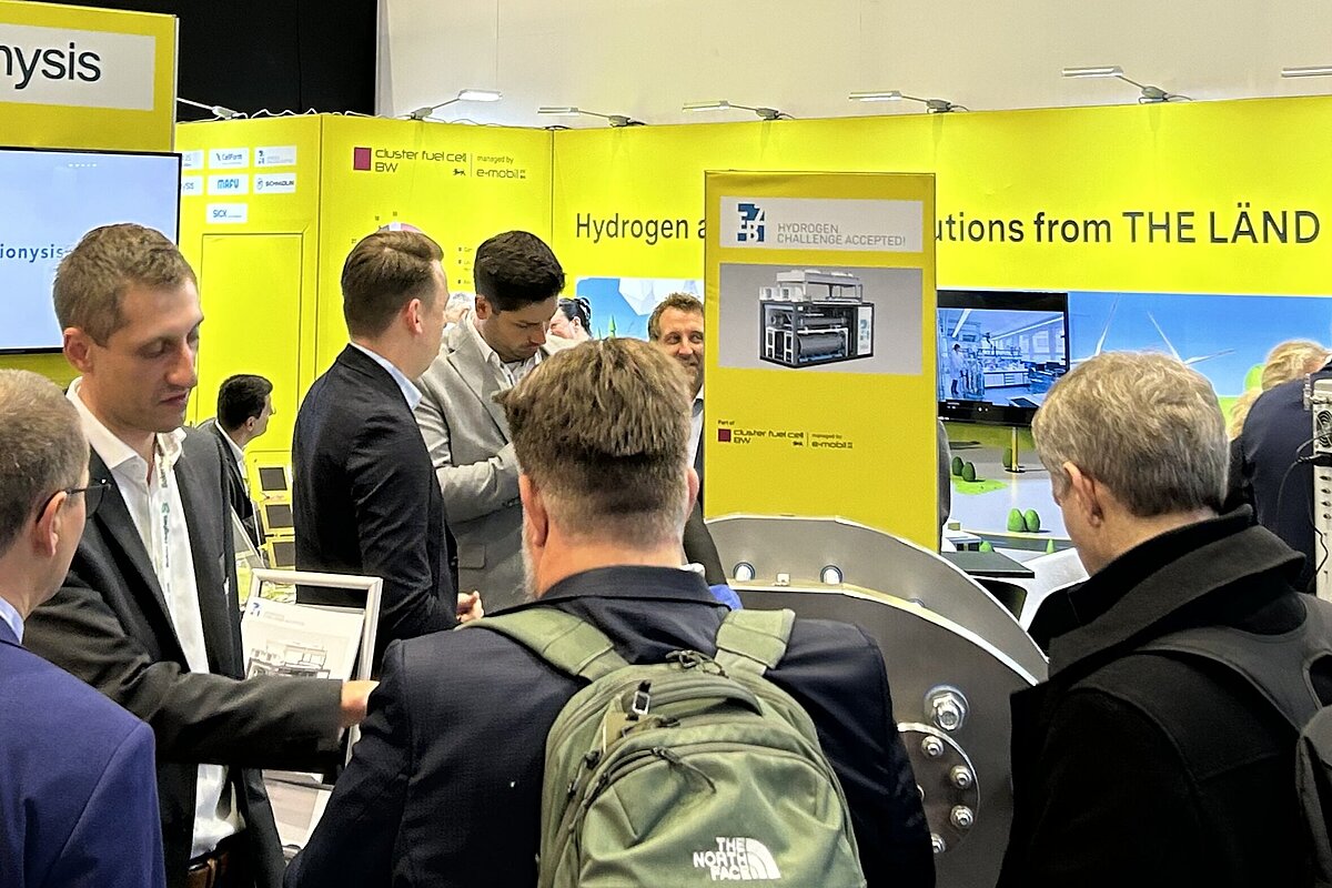 Die von der Landesagentur koordinierten Wasserstoff-Netzwerke, Cluster Brennstoffzelle BW und Plattform H2BW, zeigen Produktions- und Prüftechnologien für Elektrolyseure und Brennstoffzellen sowie PFAS-freier Membranproduktion. Folgende sieben Unternehmen aus dem Cluster Brennstoffzelle BW sind vor Ort: Air Management Systems GmbH, CellForm Hydrogen GmbH & Co. KG, EBZ Systec GmbH, Ionysis GmbH, MAFU Robotics GmbH, SCHMIDLIN Labor + Service GmbH & Co. KG und SICK AG.